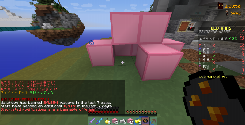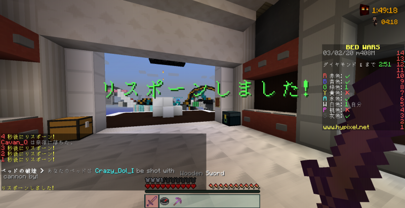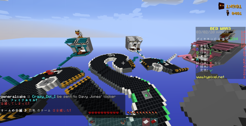 bed warsとは、簡単に説明すると、自拠点にbedがあり、そのbedが破壊されるとリスポーンできなくなるというPVPです。